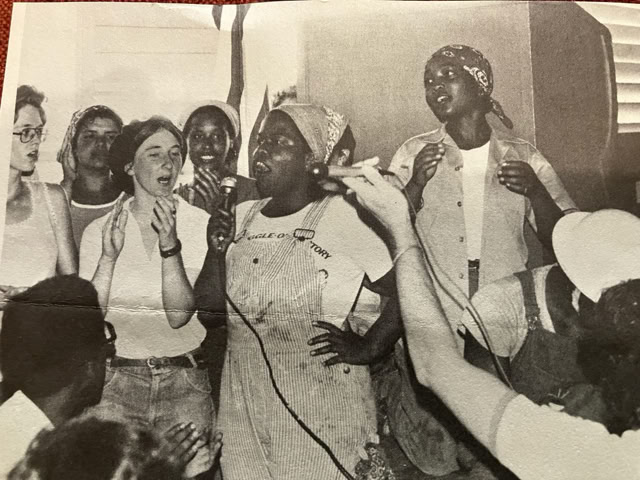 My life has been a continuous merger of politics and music. Music brings people together across language, culture and experience. It can soothe, inspire and motivate. I honed my craft not only with folk and rock and roll groups, choirs and open mics, but at rallies, protest marches, and labor events. I was immensely privileged in my twenties to open for Holly Near; to perform with Charlie King; and to be one of many performers at rallies in California where Pete Seeger and Bernice Reagan were featured.