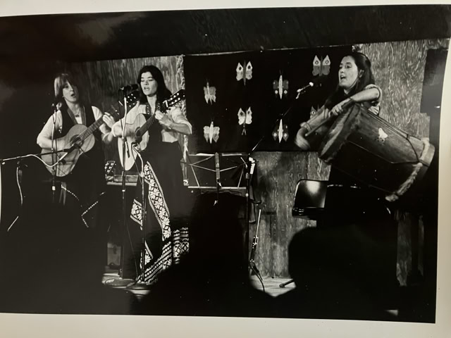 I have also been able to travel and to share music in Mexico, Ireland, Scotland, Kenya and Cuba. My appreciation of the Nueva Cancion music of Chile, and engagement with La Pena Cultural Center in Berkeley, birthed the formation of a Latin and North American folk ensemble, “Mariposa” with two other women. We played at numerous events and helped highlight the American intervention in Chile.